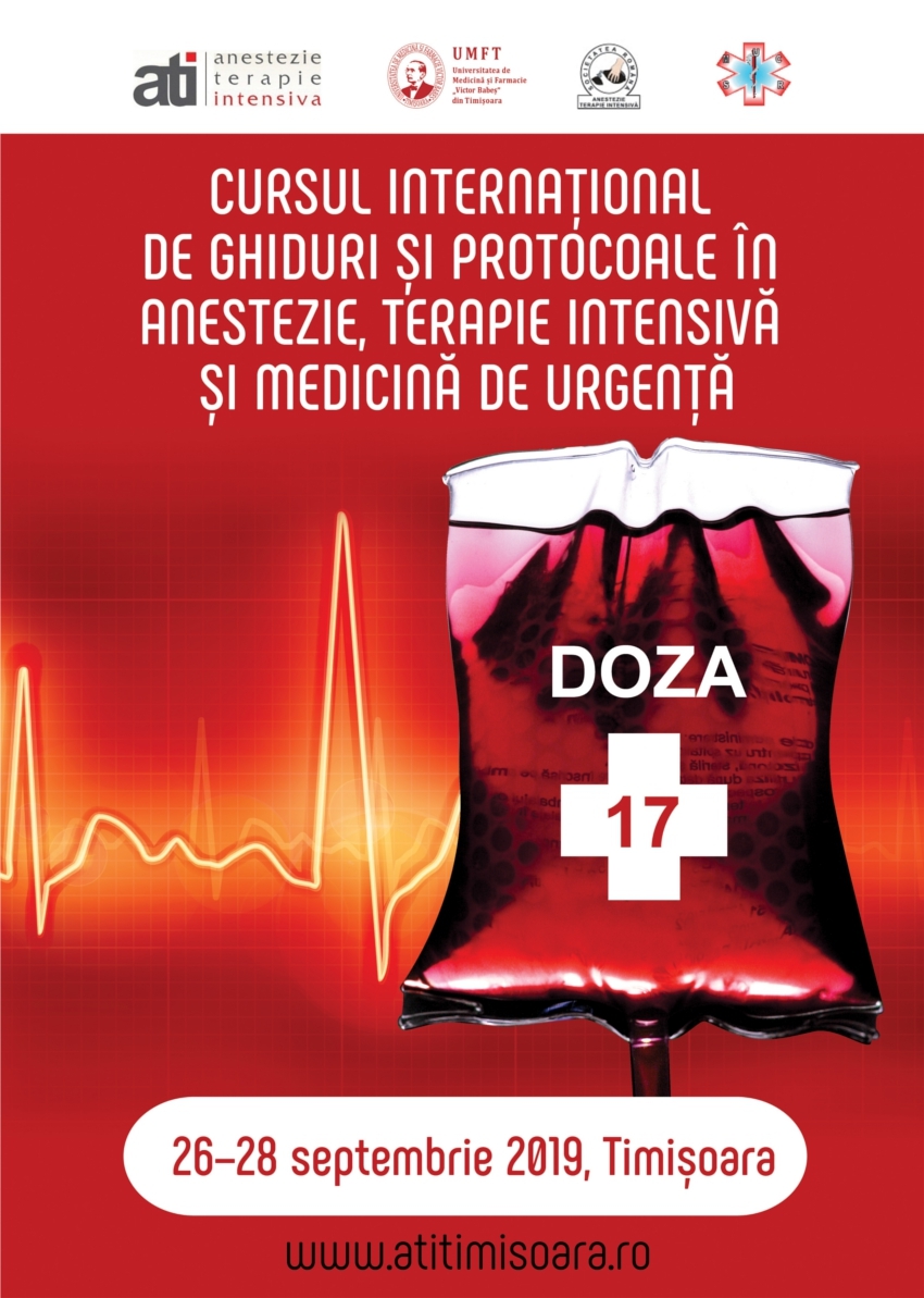 Anul acesta revenim la Timișoara în perioada 26 - 28 Septembrie 2019 pentru tradiționalul Curs Internaţional de Ghiduri şi Protocoale în Anestezie, Terapie Intensivă şi Medicină de Urgenţă – ediția a XVII-a.