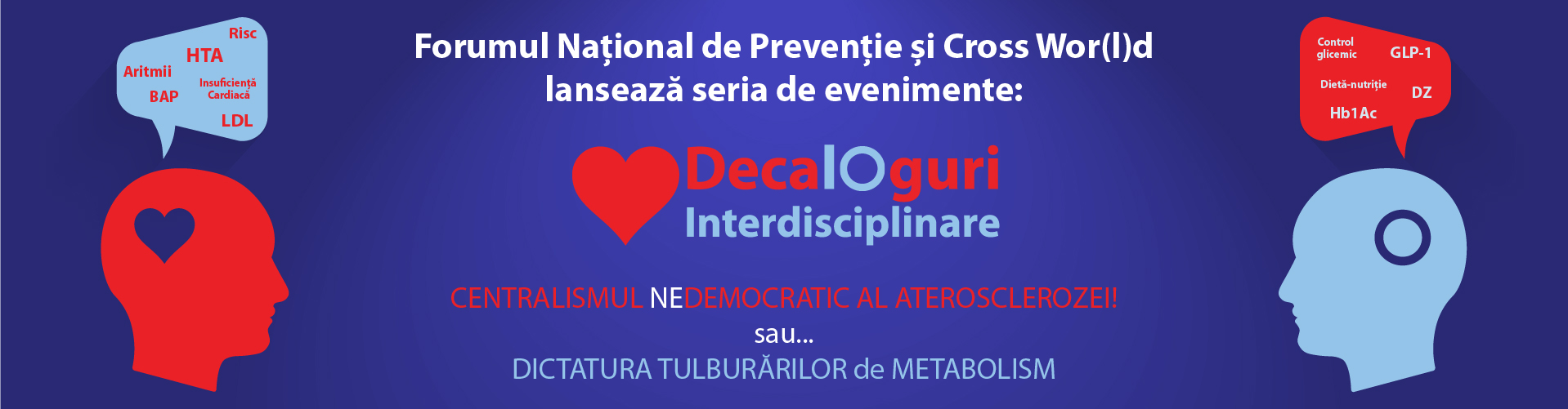 Afisari: 1884Forumul Naţional de Prevenţie, prin interfaţa Cross Wor(l)d - My Interface to CardioMetabolic Environment - lansează mult aşteptatul proiect DECALOGURI INTERDISCIPLINARE: mai multe serii de evenimente virtuale, de tip webinarii live, cu o structură aparte, interactiv-educaţională, ce vor permite participanţilor să interacţioneze în timp real cu liderii de opinie invitaţi.