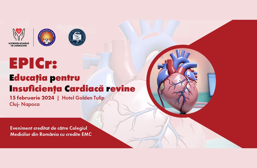 Afisari: 2035Societatea Română de Cardiologie vă invită la cursul „EPICr: EPIC revine” ce se va desfășura în format fizic, la Cluj-Napoca, Hotel Golden Tulip, în data de 15 februarie 2024.