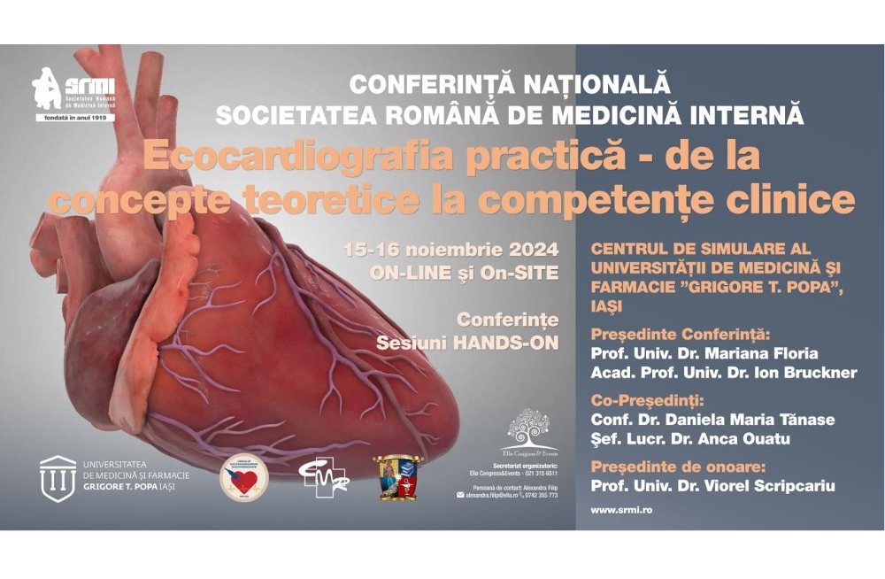 Ne face o deosebită onoare să vă invităm la prima conferinţă de ecocardiografie care se va desfăşura sub egida Societăţii Române de Medicină Internă şi a Universităţii de Medicină şi Farmacie "Grigore T. Popa" Iaşi. Conferinţa se adresează tuturor medicilor care utilizează ecocardiografia în practica curentă independent de gradul de competenţă. Aceasta va include prelegeri teoretice, sesiuni de cazuri clinice şi de imagini comentate, care în paralel, vor fi dublate de sesiuni de tip hands-on. Lectorii sunt cardiologi cu o experienţă bogată, majoritatea având şi acreditare EACVI.