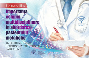 Stimați colegi,Societatea Română de Medicină Internă organizează în data de 16 februarie 2024 webinarul „Importanța echipei multidisciplinare în abordarea pacientului metabolic”,&nbs...