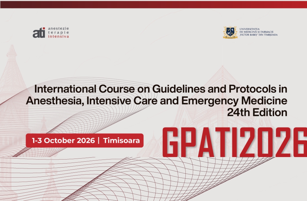 Afisari: 17We are pleased to welcome you to the 24th Edition of the International Course on Guidelines and Protocols in Anesthesia, Intensive Care and Emergency Medicine, scheduled to take place from October 1 to 3, 2026, in Timișoara.