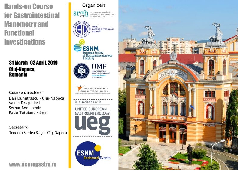 We aim to offer interactive, hands on course on several functional investigations for the gastrointestinal tract: high resolution esophageal manometry (HREM), high resolution anorectal manometry (HRAM), 24h pH - multichannel intraesophageal impedance monitoring and breath tests investigations. To maximize the learning process, participants will be divided in small groups, short lectures will precede the examinations, and case presentations will be discussed with experts.