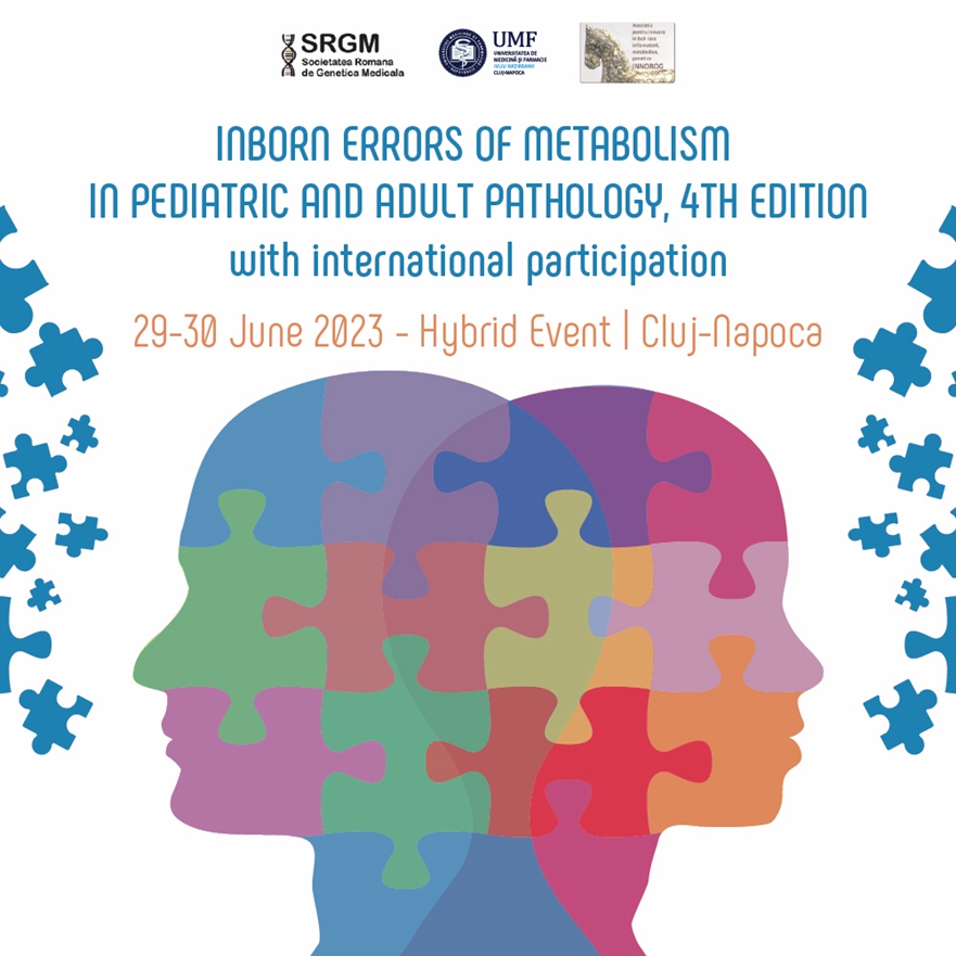 We are very pleased to invite you to participate at the 4th edition of the HYBRID event "Inborn errors of metabolism in pediatric and adult pathology" which will take place between 29-30 June 2023 at Grand Hotel Napoca, in Cluj-Napoca.