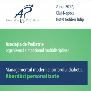 Asociația de Podiatrievă așteaptă pe 2 mai 2017,la Cluj-Napoca, Hotel Golden Tulip, la Simpozionul științific „Managementul modern al piciorului diabetic. Abordări personalizate”.