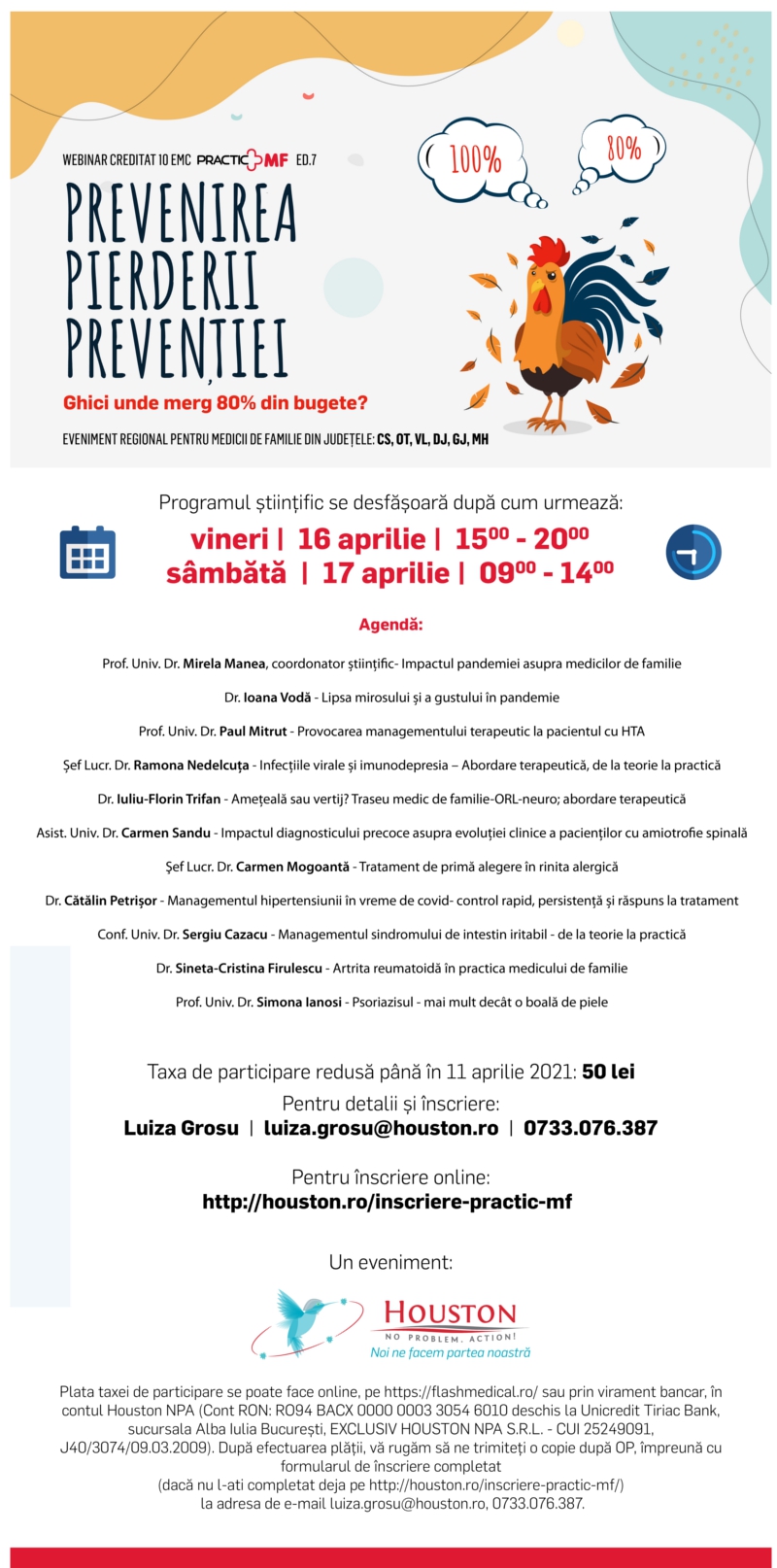 ”Consultația” poate fi programată accesând link-ul: http://houston.ro/inscriere-practic-mf/ sau sunând la nr de tel: 0733 076 387, iar colega noastră Luiza vă va ajuta cu toate informațiile necesare.