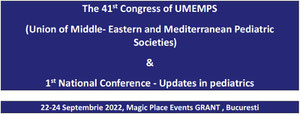 Perioda: 22-24 septembrie 2022, Magic Place Events GRANT, BucurestiStimați colaboratori,In numele Societăţii Române de Pediatrie si al UMEMPS (Union of Middle- Eastern and Mediterranean Pediatric S...