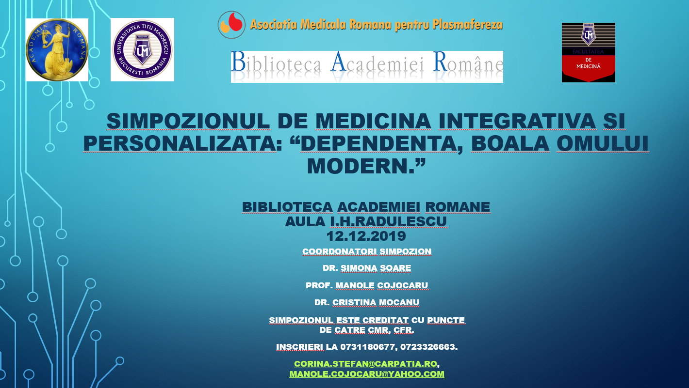 Simpozionul de medicina integrativa si personalizata: "DEPENDENTA, BOALA OMULUI MODERN."
