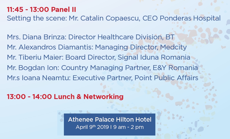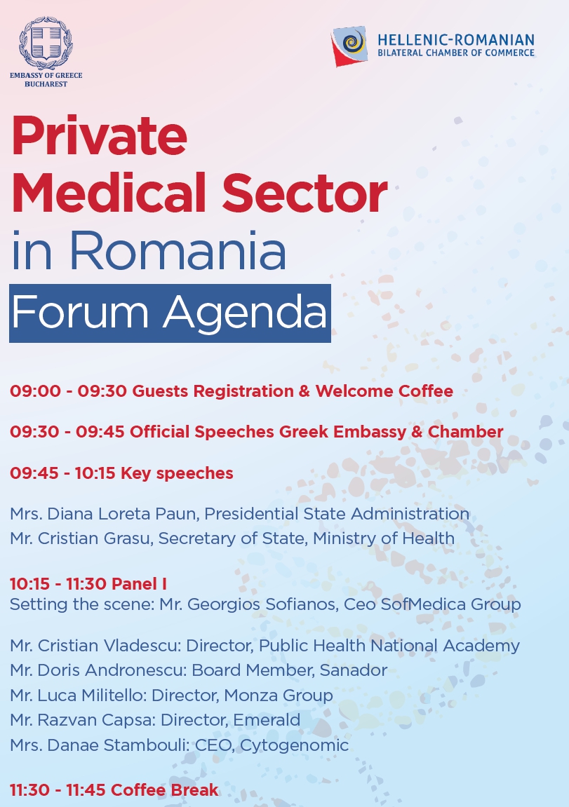 The Hellenic Romanian Bilateral Chamber of Commerce (HRCC) together with the Embassy of Greece to Bucharest have the great pleasure to invite you on April 9th at Hilton Hotel Bucharest to a conference on the Private Medical Sector in Romania and its vital role on the sustainable development of the healthcare system in our country.