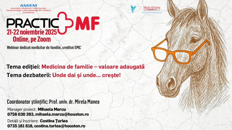 Vă invităm la webinarul creditat Practic MF – Medicina de familie: valoare adăugată, 21-22 noiembrie, online pe Zoom.