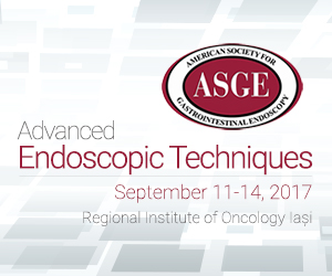 Afisari: 2844We have the pleasure to announce you the “Workshop on Advanced Endoscopic Techniques” that will be held in Iasi, at the Regional Institute of Oncology, 11th to 14th of September, 2017.