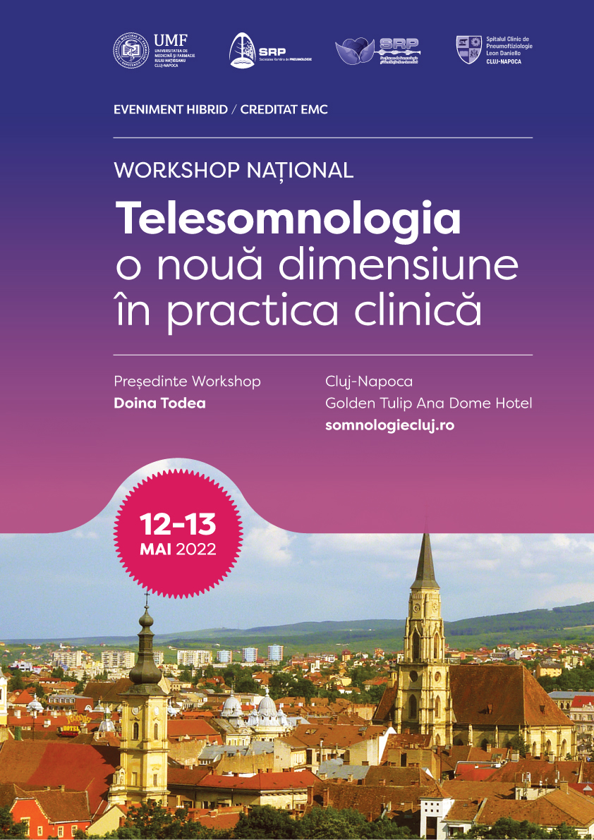 În numele Comitetului de Organizare am deosebita plăcere și onoare de a vă invita să participați la Workshop-ul Național „Telesomnologia – o nouă dimensiune în practica clinică!”, eveniment pe care îl vom organiza de această dată, în variantă hibridă, combinând prezentările desfășurate online cu cele on-site, în perioada 12–13 mai 2022.