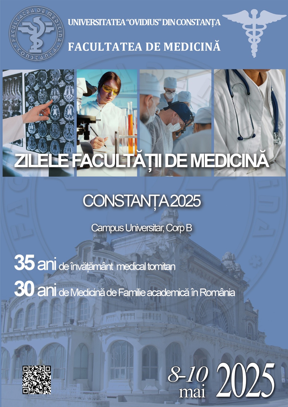 Facultatea de Medicină din cadrul Universității „Ovidius” din Constanța organizează, în perioada 8–10 mai 2025, o ediție aniversară a Zilelor Facultății de Medicină, care, anul acesta, marchează 35 de ani de existență a instituției.